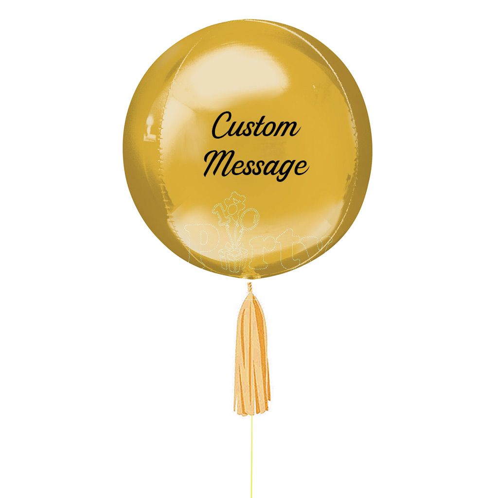 Surprise your special one with this pretty customised message gold orbz balloon.
