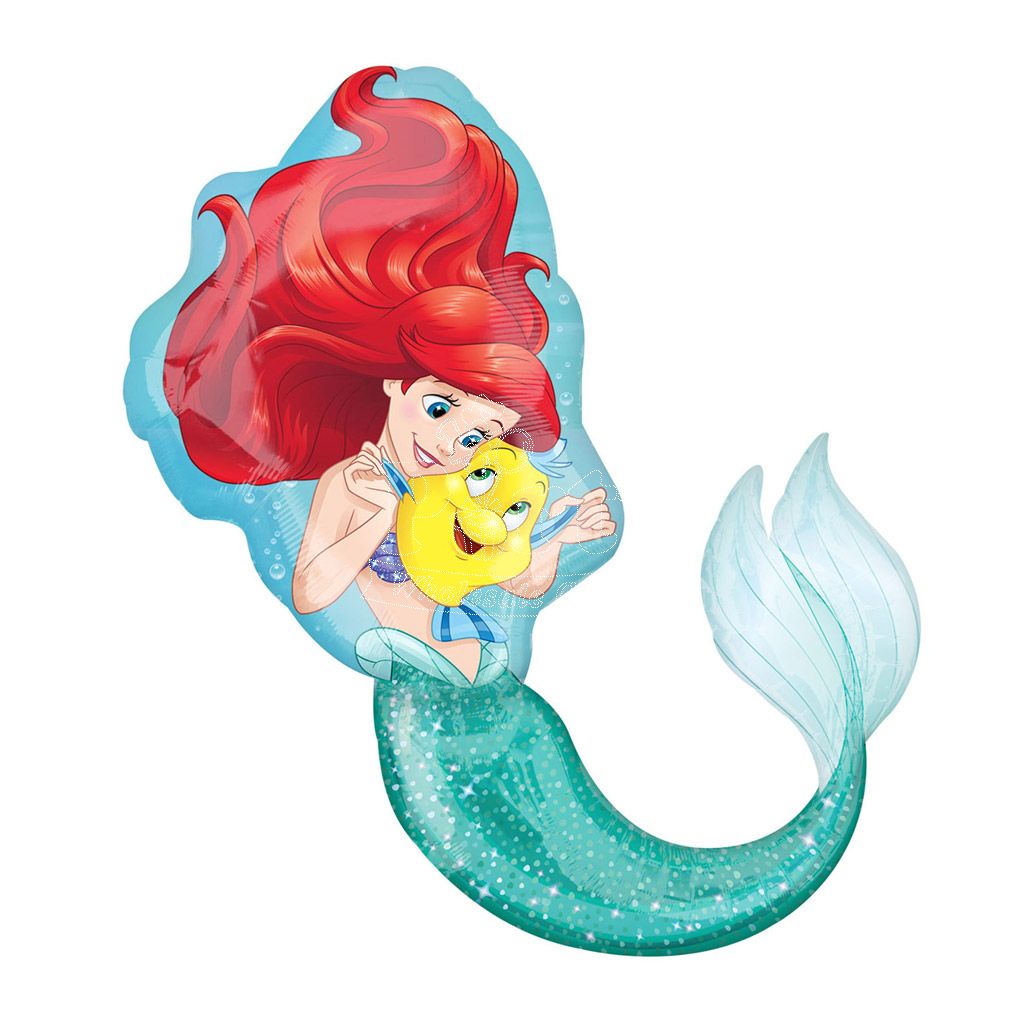 Wow, your little princess with her favourite mermaid and her yellow tropical fish buddy, Flounder! Party Wholesale's Jumbo Little Mermaid Ariel Balloon features everyone's favourite undersea princess with her lovable friend, all against a mint green backdrop.